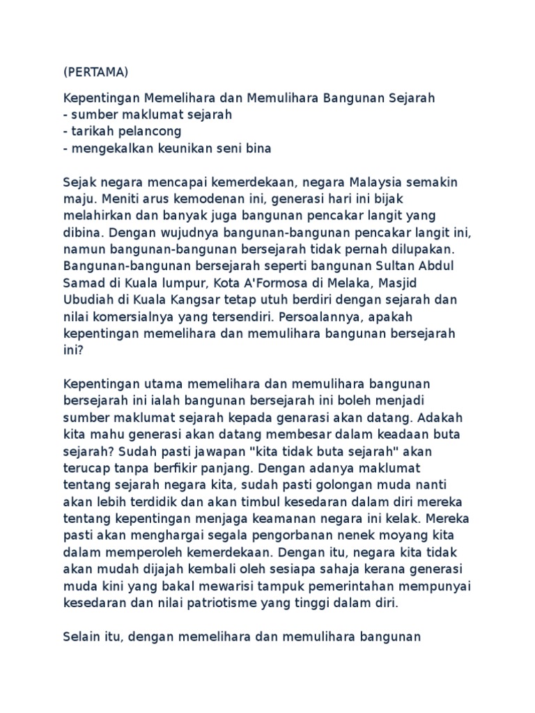 Kepentingan Memelihara Bangunan Bersejarah Kerja Kursus ... from i0.wp.com Kepentingan memulihara dan mengekalkan bangunan bersejarah. Kepentingan memelihara peninggalan zaman prasejarah adalah untuk menjaga agar peninggalan tersebut tidak rusak dan dapat dipelajari orang banyak dan generasi yang mendatang. Kepentingan utama memelihara dan memulihara bangunan bersejarah ini ialah bangunan bersejarah ini boleh menjadi sumber maklumat sejarah kepada genarasi akan datang. Dgn kata lain pemelihara hrs punya kebun binatang atau taman safari yg aman. Peninggalan bersejarah diwarisi dari generasi masa lalu, dipelihara saat ini dan diteruskan untuk kepentingan baca juga: Kepentingan menjaga silaturahim amat dititikberatkan dalam islam, malah allah menjanjikan ganjaran besar untuk orang yang sentiasa menjaga hubungan itu. Selamat mencoba dengan hasil yang berbeda dan maksimal. Menyesuaikan porsi makan ternyata bisa menjadi cara untuk memelihara kesehatan lambung.