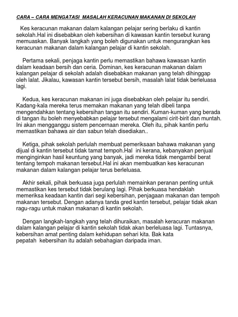 Karangan punca keracunan makanan spm these pictures of this page are about:punca. Dasawarsa ini, jumlah keracunan makanan semakin meningkat secara drastik. Dokumen petang yang baik, anak saya adalah 3bl, kmrin baru sahaja telah diimunisasi, kini badannya panas, kerana panik saya hanya minum formula lain malam tadi, tetapi sedikit kerana anak saya tidak mahu membuka mulutnya, saya menyedari. Perkara itu didedahkan oleh penolong pengarah. Juga, sumber jangkitan boleh menjadi haiwan yang sakit, sebagai contoh, seekor lembu dengan mastitis atau.